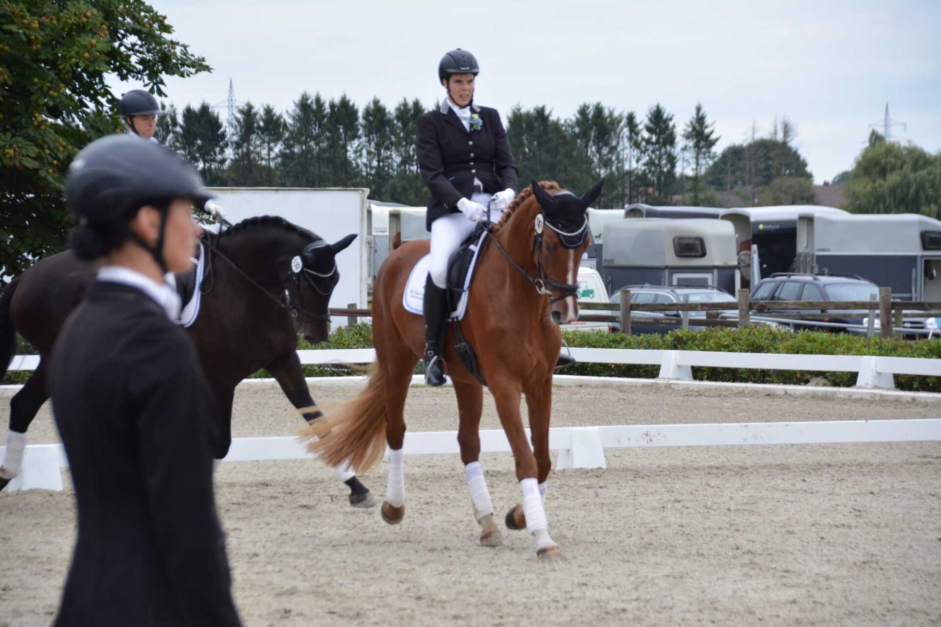 Die Standartenmannschaft unseres Vereins ist bei den Kresimeisterschaften mit einer 7,7 vierte in der Mannschaftsdressur (Klasse A) geworden. Dabei Waren Andrea Gähler auf Florentine for Joy, Anna Ferentschak auf Donna Rosa de la Coeur, Mareike Stelter mit Starlight of Gold und Markus Plate mit Sizilianer. Vorgestellt wurde die Mannschaft von Sylvia Bobrink.