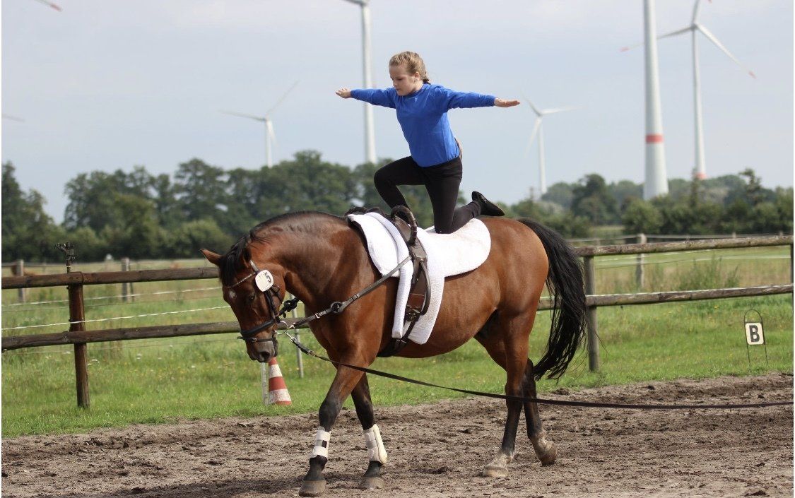 Auch in der Voltigiersparte gab es einige bestandene Abzeichenprüfungen: Maren Müller, Thekla Stroteich und Bente Brüggemann haben das Longierabzeichen 5 bestanden, Nika Ludwig das Voltigierabzeichen 4.