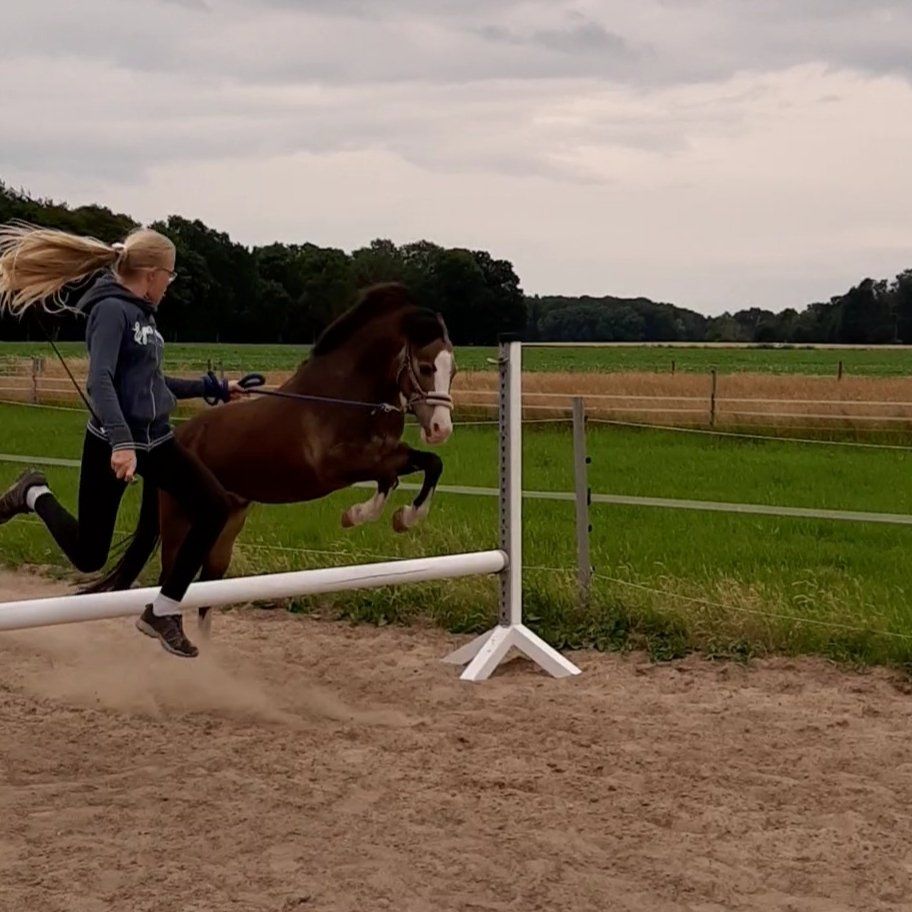 Unsere Voltipferde und Longenführer waren am Sonntag ordentlich gefordert. Denn Kerstin Bock war zum Longierlehrgang bei uns. Sie trägt das goldenen Longierabzeichen und stellt als Longenführerin das S**-Team Handorf-Sudmühle 1 vor. Und so kamen sowohl unser Neuling Big Ben als auch die vergleichsweise alten Hasen Calito und Calimero ordentlich ins Schwitzen: Kerstin Bock gab unseren Logenführerinnen jeweils Tipps, wie sie mehr aus unseren Voltipferden herausholen können, sodass die Voltigierer obendrauf schön und sicher turnen können und unseren Pferde vor allem fit und gesund bleiben.